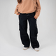 Pantalón cargo moderno de mujer con corte amplio y tiro alto, diseñado con múltiples bolsillos funcionales. Fabricado en tejido premium de 97 % algodón y 3% elastano para mayor comodidad y resistencia. Incorpora sutiles detalles de marca como marquillas, banderas y botones contramarcados. Puedes abotonar la pretina tipo "cuello de camisa" y recoger la bota con el elástico para darle otro styling.